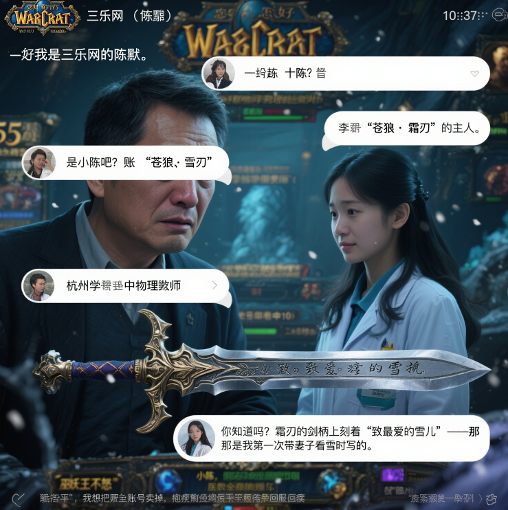 “小陈,我想把账号卖掉,但总舍不得。”他的声音突然哽咽,“你知道吗?霜刃的剑柄上刻着‘致最爱的雪儿’——那是我第一次带妻子看雪时写的。”