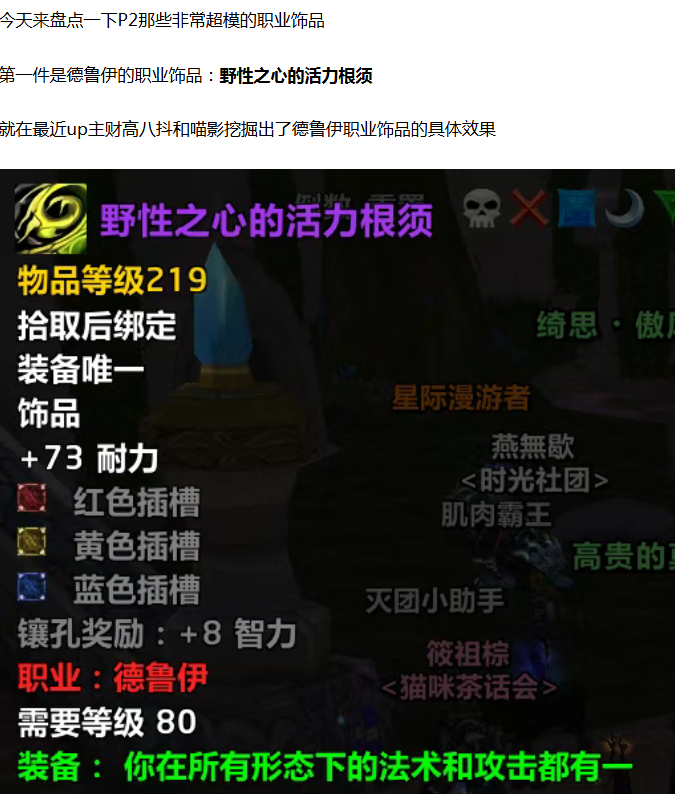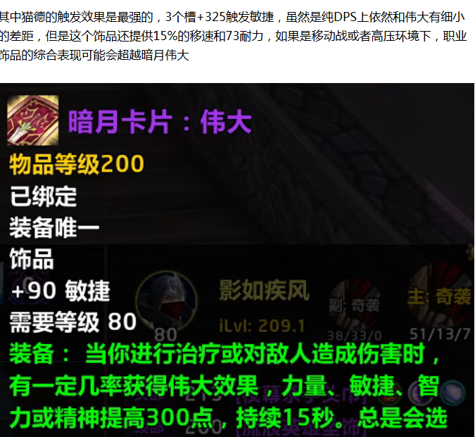 大家觉得这两个饰品怎么样呢?你觉得德鲁伊的饰品可以替换掉暗月卡牌伟大吗?欢迎在评论区分享你的观点