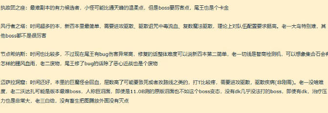 12.0版本的8个大米难度已经公布,总体难度降低了很多,但是数值依旧在线,尤其是有几个特别难处理的boss。非常的变态,变态程度堪比点治疗链子的沼面,各种大规模掉血+强制移动,而加上治疗职业的简化,到时候治疗职业可以说说是彻底起飞了。不出意外下个版本治疗可以提前锁定国家队的一员