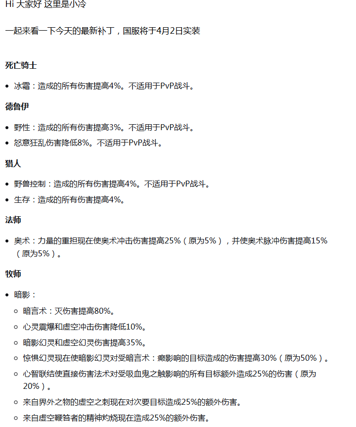【魔兽世界】正式服3月28日最新职业调整!2个职业获得巨幅加强