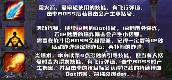 霜火箭、活动炸弹、炎爆术、法术连击天赋