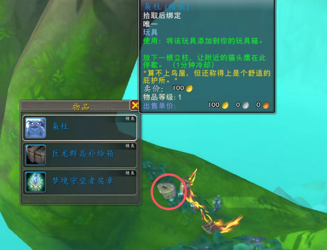 我们来到47.34位置的树上,拾取可获得玩具:枭柱,玩具可以在地上放一个柱子比较好看,如果附近有猫头鹰还会过来睡觉。