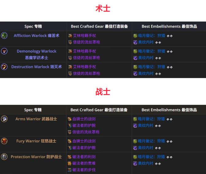 《至暗之夜》第1赛季全职业制作装备及美化词条推荐!