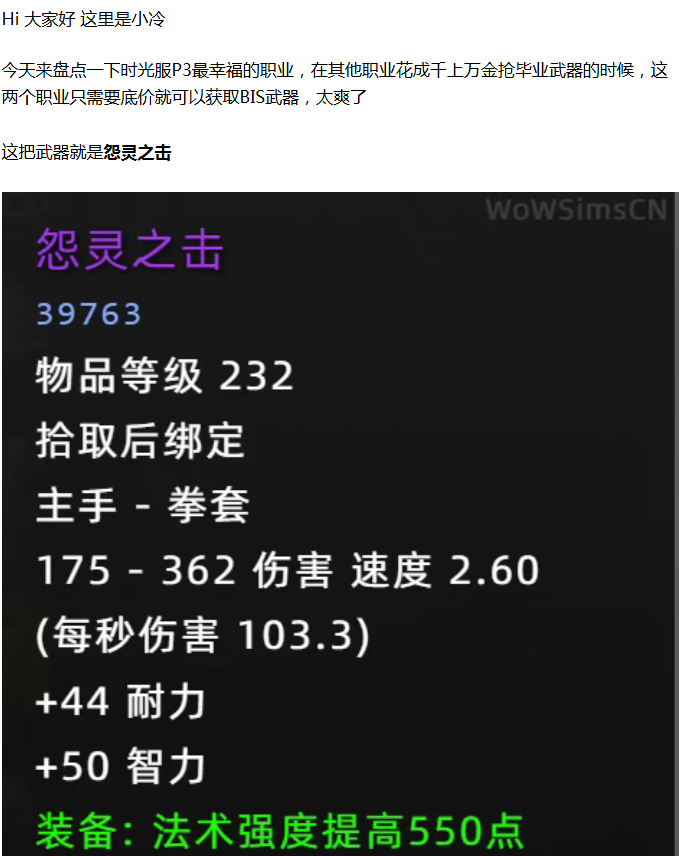 【魔兽世界】时光服P3最幸福职业!100G就可获取等价逆潮的BIS武器