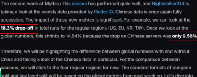 第三赛季已经开始了一个月时间了,这期间有不少玩家AFK,外网一知名网站就第三赛季刚开始到现在的玩家数据进行了统计,发现了一个令人意外的信息,那就是国服玩家的流失率竟然是全球所有服务器当中最低的一个,但是在通过率方面国服就没有其他服务器那么高,那么具体的数值到底是怎么样的呢?友情提示以下数据非官方数据,来源第三方平台统计,仅供参考。