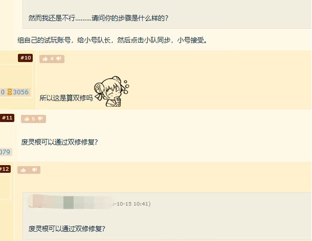 论坛上有一位大佬分享了关于永恒能量获取异常解决办法,并且废灵根也可以修复也可以通过双修的办法解决。具体的操作:同战网的角色,然后用子战网号创建一个角色,邀请子战网角色 - 给队长 - 子战网同步任务线 - 使用纪念品,有点类似于双修。