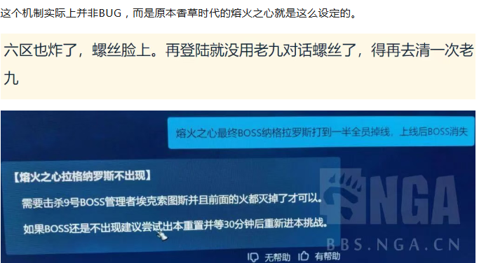 比较惨的是尾王大螺丝被踢下线再上的时候,结果再上线跑到大螺丝的房间却法系Boss就不刷新了。玩家还以为是Boss凭空消失,于是就去找了GM咨询,发现还得再去打一次没有掉落的9号Boss,才能触发大螺丝。