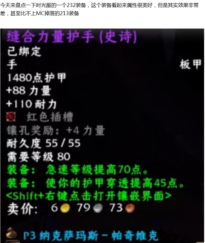 【魔兽世界】时光服最陷阱的232装备!DPS模拟不如MC掉落213装备,千万别买