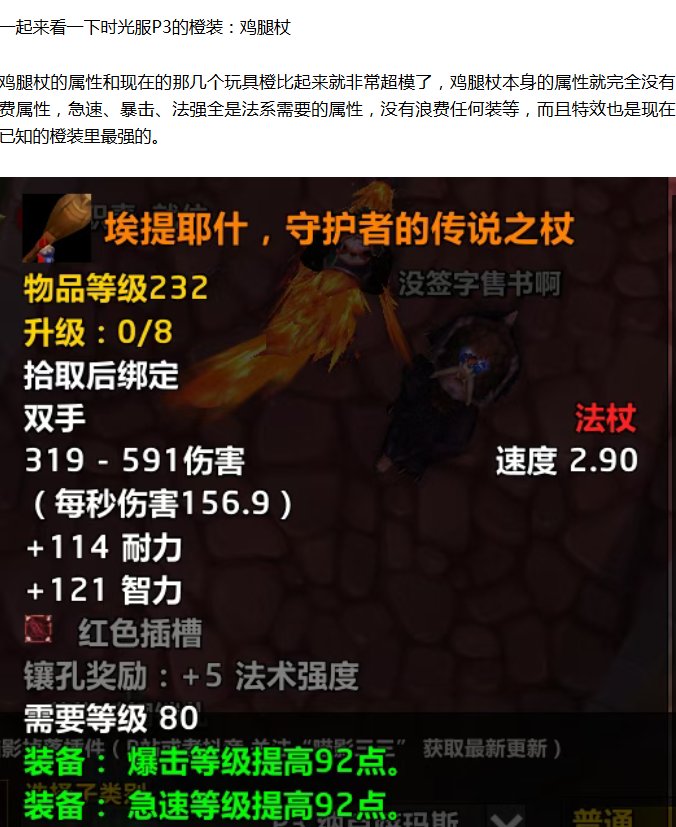 不过如果是碎片的形式的话有点不太符合现在时光服橙装的掉落,毕竟风剑的掉落都被简化了,风剑现在不需要收集左右脸就可以直接获取,橙项链也是直接掉落,如果鸡腿杖是收集碎片的形式的话就少了一份惊喜,所以很多玩家觉得官方并不会让鸡腿杖变为碎片掉落,可能改为直接掉落鸡腿杖。