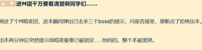 现在军团remix的团本有bug,哪怕是点了拒绝然后出本也还是会被黑CD,对于普通玩家来说,每日提升巅峰等级的方法基本上就是打M团了,被黑CD了真的挺难受的~