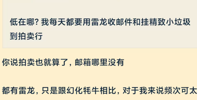 起因是有玩家提问绝版的雷龙到底什么时候返厂,之前因为玩怀旧服错过了,现在特别想要一只。但是底下的评论全都是与其花那么多金币或者RMB去购买,还不如拿一个牦牛更加划算,雷龙的使用频率还不如牦牛之类的话。不过只有用过的人才知道,雷龙有时候真的是很方便,尤其是制作业