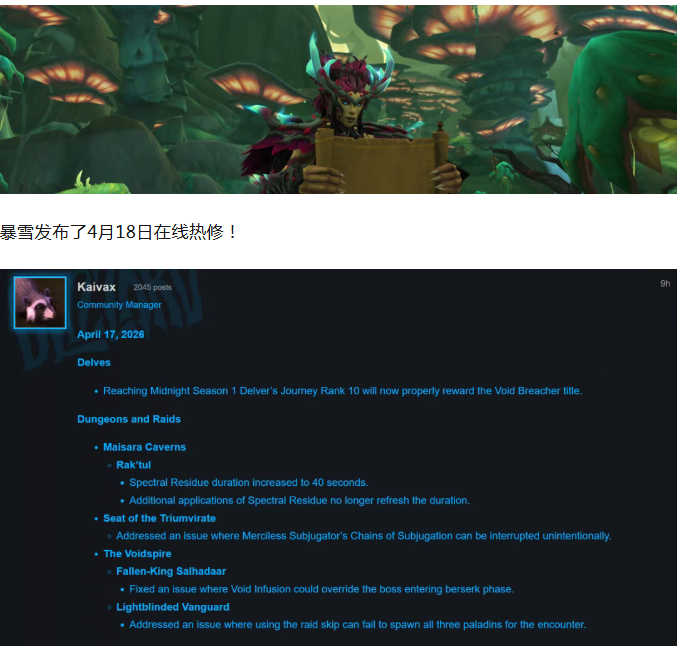 魔兽世界:4月18日在线热修!
